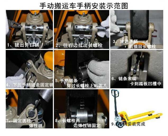 目前,越來越多的場所都會(huì)看到手動(dòng)搬運(yùn)車的身影,重量輕,容易操作,價(jià)格低,又經(jīng)濟(jì)實(shí)用。特別適用于汽車裝卸及車間、倉庫、碼頭、車站、貨場等地的易燃、易爆和禁火物品的裝卸運(yùn)輸設(shè)備。下面北京凌鷹技術(shù)人員來教你地牛手柄的安裝,詳情如下: