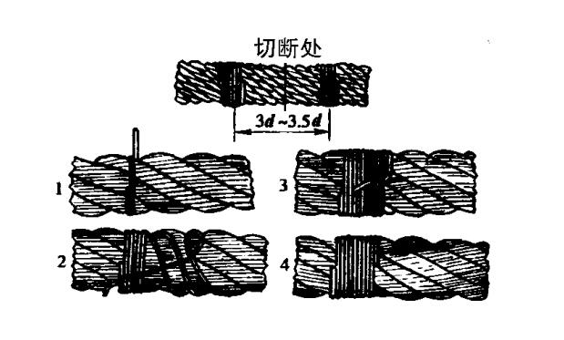 鋼絲繩作為鋼絲繩電動(dòng)葫蘆的重要配件,那么鋼絲繩的切割和炸結(jié)也是重要的技術(shù)知識(shí),接下來(lái)我們就要做一個(gè)具體的介紹:切斷鋼絲繩,可借助于特制鍘刀、鋼鋸或氧炔氣割均可。但為防止切斷時(shí)鋼繩各股與鋼絲的松動(dòng),須在切斷前,先在切割的兩邊用鋼絲扎結(jié)牢靠。扎結(jié)位置和順序見(jiàn)下圖