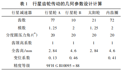 行星減速器的行星齒輪傳動(dòng)幾何參數(shù)設(shè)計(jì)計(jì)算:考慮到實(shí)際工況,行星減速器的行星齒輪傳動(dòng)幾何參數(shù)設(shè)計(jì)計(jì)算如下表所示