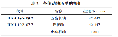 機(jī)體各傳動(dòng)軸的扭矩:起重鏈條承受的載荷選用值,經(jīng)計(jì)算,行星齒輪減速器的各傳動(dòng)軸所受的扭矩如表2所示: