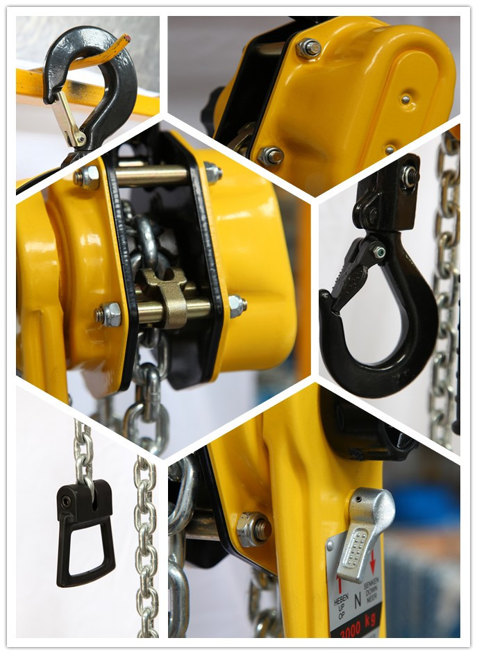 2、 吊鉤帶有牢固的安全鎖扣,可自由旋轉360度,吊鉤采用35CRMO材料,使吊鉤強度更強,韌性更好。
